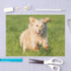 Papel de tejido personalizable con fotografía de un perro recuperador de oro corriendo en pasto verde largo
