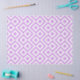 El papel de tejido elegante presenta un patrón de lavanda y geométrico blanco. Los diamantes de Lavender con bordes blancos están rodeados de pequeños crujidos morados que los rodean. Los zigzags blancos separan los sinuosos caminos púrpura pálido y los diamantes de desvío. Imagen creada digitalmente. Copyright © Claire E. Skinner. Todos Los Derechos Reservados.