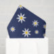 Un patrón de flores de margarita blanca con pardos amarillos en azul marino.