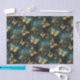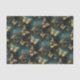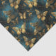 Un papel de tejido elegante con un patrón de mariposas en brillantes tonos dorados y azules brillantes.