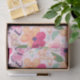 Papel de tejido rosa bonito con flores y mariposas, ideal para regalar primavera o verano. Jóvenes fiestas, a la novia. Papel de bonito