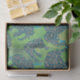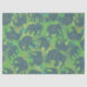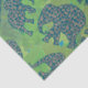 Una hoja de divertido Papel Tejido, con siluetas elefantes, llenas de un patrón Paisley azul oscuro y borgoñoso, sobre un fondo de hojas de palma verdes. Este patrón, que forma parte de la colección "Heffalumps" de Posh & Painterly, se puede ajustar para que se ajuste a cualquier Tissue Paper.