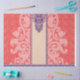 El diseño parece ser un diseño textil detallado, posiblemente destinado a ropa o tela. Aquí se presenta un desglose de sus elementos: ・ Característica central: Una franja ornamental vertical con intrincados patrones azules y blancos, que recuerdan al bordado tradicional o al trabajo de filigre. ・ Motivos de flanqueo: diseños simétricos tipo paisley en un tono más ligero a ambos lados de la tira central. ・ Fondo: un color rojo rico con un patrón elaborado y denso, añadiendo textura y profundidad. ・ Borde inferior: borde horizontal con elementos repetitivos similares a los de la tira central, dispuestos de forma lineal. Esta combinación de elementos decorativos sugiere que podría ser el diseño de una prenda de vestir como kaftan o túnica, que exhiba artesanía y artesanía cultural.