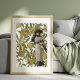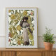 Hermosa dama de la Belle Époque - ilustracion de moda vintage. Papel tapizado de frutas y flores, coronas de flores doradas