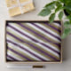 Papel de tejido de vacaciones con un diseño de rayas diagonales de oro, blanco y púrpura.