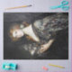 Papel de tejidos creativo y único en descodificación que utiliza una gama de texturas, patrones y ilustraciones vintage en paletas de colores vibrantes, silenciadas. Perfecto para desconexión, reserva de chatarra y otras artesanías de papel. Muestra a una elegante ventilado de cabello rojo con un barco de plata en las manos.
