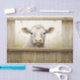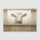Rústica granja rural Primitive White Cow En una pintura decorativa de marco Tejido Primitive Painting que presenta una ventana de vaca en un granero, al estilo del arte primitivista, retrato ilusorio y casa de campo.