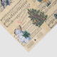 Un collage de ilustraciones vintage y partituras de Navidades. Incluye un ilustracion de una niña pequeña, un muñeco de nieve, un árbol de navidad y aves invernales azules.