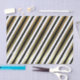 Papel de tejido de vacaciones con un diseño de rayas diagonales de oro, blanco y negro.