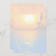 Papel de ventilador del programa de bodas con imagen de fondo de atardecer tropical. La imagen está en ambos lados del papel de calidad con una selección de actualizaciones y apariencia de borde.