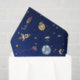 Papel del tema de la aventura de la luna - ilustraciones al estilo Personalizado de todo tipo de cosas que se pueden encontrar en el espacio exterior - buques de cohetes, OVNIs, satélites, estrellas, planetas, luna y tierra. Observen que los ojos de su pequeño explorador de espacio se iluminan cuando ven su regalo envuelto en este adorable papel de té de aventura lunar.