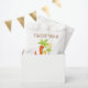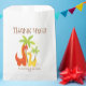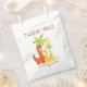 ¡Este lindo bolso de favores de la fiesta de los dinosaurios es perfecto para celebraciones de cumpleaños de niños o niños! Con dos coloridos dinosaurios bajo las palmeras con un mensaje de "Gracias", esta bolsa puede ser personalizada con el nombre y el texto fiesta de su hijo. Ideal para regalar dulces, juguetes pequeños o dulces a los clientes. Ideal para fiestas con temática de dinosaurio para niños y chicas.