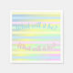 revelación de bonito que combina servilletas para mi colección de revelaciones de género. En rayas rosa pastel, verde, azul, amarillo y verde. Dice "¿qué será?"