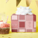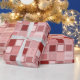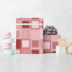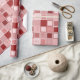 papel envolvente con cuadrados, encaje y rosas, color rosa a rojo
