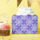 Este documento de envolvimiento presenta medallones multicolores sobre un fondo blanco. Esto se puede usar para cualquier ocasión, desde cumpleaños hasta aniversarios. El diseño es un diseño de mosaico real de Oregon Tile maker Fay Jones Day.