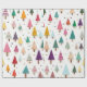 Pequeños árboles de navidad adornan estos coloridos y festivos patrones retro para su envoltura de regalos de invierno. Ellos apelarán a tus amigos y parientes que disfrutan de la apariencia vintage de mediados del siglo mientras desenvuelven los regalos que les has dado. Este rollo presenta una vista mediana-grande de los árboles de Navidad buenos para paquetes medianos o grandes.