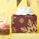Papel de envoltura con patrón de copos de nieve del purpurina de oro esparcido. Copos de nieve purpurina de oro sobre papel de envoltura de borgoña. Un patrón sin fisuras de copos de nieve en diferentes diseños y formas hacen de este papel de envoltura atemporal, clásico y tradicional. Un elegante diseño invernal, minimalista y sencillo. Copos de nieve en un ilustracion adecuado para la temporada de vacaciones, eventos festivos y Navidades. Este papel de envoltura se adapta a la mayoría de las ocasiones en la temporada invernal, tanto Navidades como cumpleaños año tras año. Disponible en diferentes tamaños y combinaciones de colores.