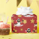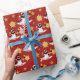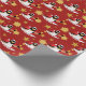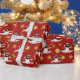 Navidades envueltos en papel con un ilustracion de un lindo pingüino real sosteniendo un cetro y usando un sombrero rojo de Santa; Navidades diseño de personalizado de vacaciones para niños, con fondo rojo con personalizable plantilla de texto para su nombre o mensaje; ilustrado por Radka Kavalcova