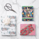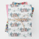 Papel envuelto en un conjunto de tres sábanas: - una escena nevada con copos de nieve, - celebra koala, - rosas