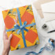 papel de fondo a cuadros de naranja y punkin yello envuelto en orquídea blanca floral exótica. Papel envoltorio Feliz Cumpleaños orquídeas flores Fiesta de flores Suministros esenciales Papel de relleno Orquídea - orquídeas florales envolver papel de regalo diseño original de Ines Miller. http://www.inesmiller.com