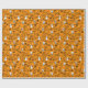 Papel envuelto con un diseño minimalista moderno para Halloween, un patrón de siluetas de calaveras, fantasmas, telarañas, una silueta de un gato, calabazas sobre un fondo naranja.