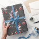 Paloma blanca con un mensaje de Navidades JOY en copos de nieve sobre fondo gris. Se puede cambiar el color de fondo.