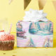 Este papel de envolvimiento de regalo de vacaciones presenta un delicado diseño de patrón sin fisuras, los ilustraciones temáticos de la época victoriana Navidades de antaño en tonos de color pastel iridiscente, en un fondo holográfico simulado. Las representaciones gráficas incluyen a Santa Claus, paisajes de nieve de invierno, un tren, una iglesia, regalos de Navidad, un árbol de navidad decorado, un pájaro, follaje de temporada, guirnaldas festivas, marcos elaborados y más.