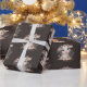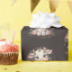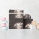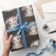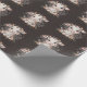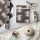 Un encantador ilustracion ukiyo-e de una vaca dulce y adorable sobre un fondo oscuro. La vaca tiene ojos grandes y expresivos, una sonrisa dulce y orejas pequeñas y disquetas. La vaca está sentada sobre un trozo de césped y rodeada de motivos florales. Papel de regalo perfecto para los amantes de las vacas.