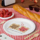 "Eres mi mantequilla de maní para mi gelatina" platos de papel kawaii. Diseñado e ilustrado por Kristine Lee. Para obtener más información, visite www.kristineleedesigns.com