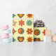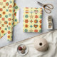 Un patrón de inspiración retro, impecable, con corazones estilizados, flores y estrellas en una cálida y atractiva paleta de colores de naranja quemado, amarillo y verde azulado. Este diseño evoca un ambiente nostálgico de los años 70, perfecto para añadir un toque de encanto vintage a cualquier regalo.