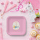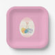 Plato de fiesta de Pascua con huevo rosa y blanco con conejo