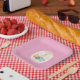 Papel Huevo rosado en el fondo de rosa de plato de fiest