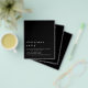 Invitación mínima al partido de los Navidades blancos negros. Una alternativa de PAPER (no tarjeta) de gran valor SIN ENVELOPES a un tamaño menor de 4,5" x 5,6" y a un precio económico. (Los sobres estándar A6 son el tamaño más próximo a caber). El minimalismo clásico en blanco y negro con este diseño totalmente personalizable. El encabezado es más grande en una elegante minúscula con los detalles que hay debajo.Personalice fácilmente el texto y se puede cambiar a cualquier color de su elección mediante la opción personalizar adicional.