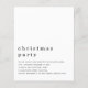 Invitación mínima al partido de los Navidades blancos negros. Una alternativa de PAPER (no tarjeta) de gran valor SIN ENVELOPES a un tamaño menor de 4,5" x 5,6" y a un precio económico. (Los sobres estándar A6 son el tamaño más próximo a caber). Un minimalismo sencillo y elegante con un diseño totalmente personalizable. El encabezado es más grande en una elegante minúscula con los detalles que hay debajo.Personalice fácilmente el texto y se puede cambiar a cualquier color de su elección mediante la opción personalizar adicional.