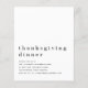Una excelente alternativa de PAPEL (no cartulina) de gran valor en un tamaño MÁS PEQUEÑO de 4.5” x 5.6” sin sobres - los sobres estándar A6 son el tamaño más cercano que cabe. Invitación sencilla de texto para la cena de Acción de Gracias. El encabezado es grande en minúsculas elegantes con los detalles debajo. Mucho espacio en blanco en la parte superior para un toque contemporáneo. Personalice fácilmente el texto con sus propios datos.