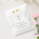 Primer diseño de la comunión sagrada, con un crucifijo de oro y efecto de encaje sobre el blanco. Listo para una fácil personalización.