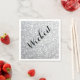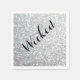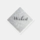 "Malvado" escrito en lujosa escritura de cinta decora esta servilleta brillante de plata, haciéndolo perfecto para agregar un poco de glamour a tu fiesta de Halloween.