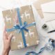 Papel marrón claro con motivos blancos Papel de envolvimiento. Tengo varios diseños de este sencillo y hermoso envoltorio de regalo en mi tienda. Este es el par blanco de renos. Dilo simplemente.