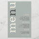 Menú simple de Boda de tipografía de marfil en papel. Una alternativa de PAPER (no tarjeta) de gran valor a un precio de presupuesto. Diseño tipográfico moderno con menú en tipografía grande en marfil con la "n" en gris, rotado y a la izquierda sobre un fondo de verde salvia claro. El color de fondo de cada lado puede cambiarse si lo desea a través del Personalizar.