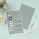 Menú simple de Boda de tipografía de marfil en papel. Una alternativa de PAPER (no tarjeta) de gran valor a un precio de presupuesto. Diseño tipográfico moderno con menú en tipografía grande en marfil con la "n" en gris, rotado y a la izquierda sobre un fondo de verde salvia claro. El color de fondo de cada lado puede cambiarse si lo desea a través del Personalizar.