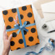 Envuelve tus regalos con estilo con estos puntos negros y naranjas de polka de tamaño medio sobre papel de envoltura. Excelente para Navidades y regalos fiestas.