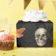 Calavera gótica y mariposas con fondo de patrón de encaje floral negro. La mariposa es un ilustracion vintage.