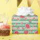 Este diseño de envoltura de regalo presenta un patrón relacionado con la sandía con rayas verdes y rosas que enfatizan la alegría y la energía de la temporada de verano.