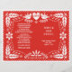 Papel Picado amores pájaros bodas rojos fiesta plegado programa con dos amoríos blancos y un corazón de amor con la palabra amor y flores, hojas y pequeños puntos en rojo. Este diseño de plantilla de boda floral estilo arte folclórico mexicano es totalmente personalizable. Utilice sólo este tipo de papel a medida que se dobla bien.