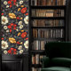 Papel Pintado Academia oscura roja, amarilla y floral blanca