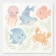 Traiga un mundo marino suave y caprichoso a su vivero con este adorable diseño de acuarela con animales de mar en tonos pastel. Este patrón cuadrado impecable incluye un tiburón feliz, un cangrejo sonriente, una medusa suave y dos peces tropicales coloridos, rodeados de plantas marinas verdes y pequeñas burbujas doradas. Perfecto para viveros de temática oceánica, habitaciones para bebés sin distinción de género o para todo aquel que ame la decoración submarina con un ambiente tranquilo y alegre. Esta obra de arte pintada a mano con suaves acuarelas crea un ambiente submarino tranquilo para bebés y niños pequeños. Este diseño de amigos oceánicos encaja maravillosamente en elementos decorativos de viveros como huellas de arte, ropa de cama, mantas para bebés y más.