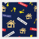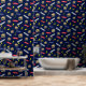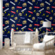 Papel mural divertido para agentes inmobiliarios. Esta divertida decoración de paredes estampadas se vende, vende y deja carteles, llaves y casas.