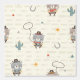Oso de alguacil con lazo, cactus, herraduras y estrellas en un fondo de crema texturada.