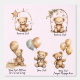 Añadir nombre y texto de bebé, - todo el texto puede ser de 2 líneas - Añadir nombres diferentes, detalles de nacimiento, otros miembros de la familia, ETC, Osos de peluche con globos en fondo rosado.