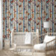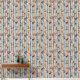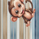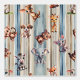 Papel Pintado Animales bebés en un fondo azul y tan a rayas